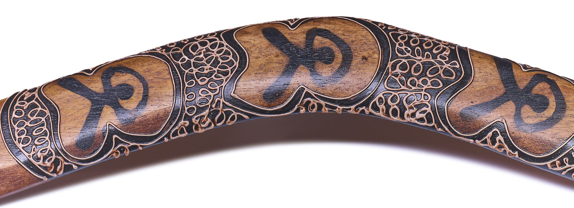 Boomerang Human 40 cm – Hand-painted Wooden Boomerang with Aboriginal Symbolism