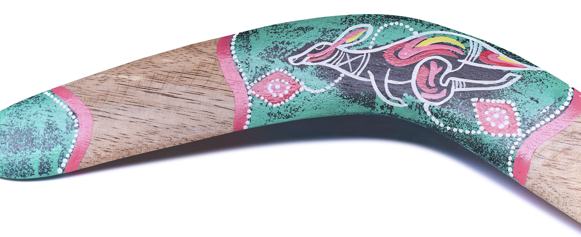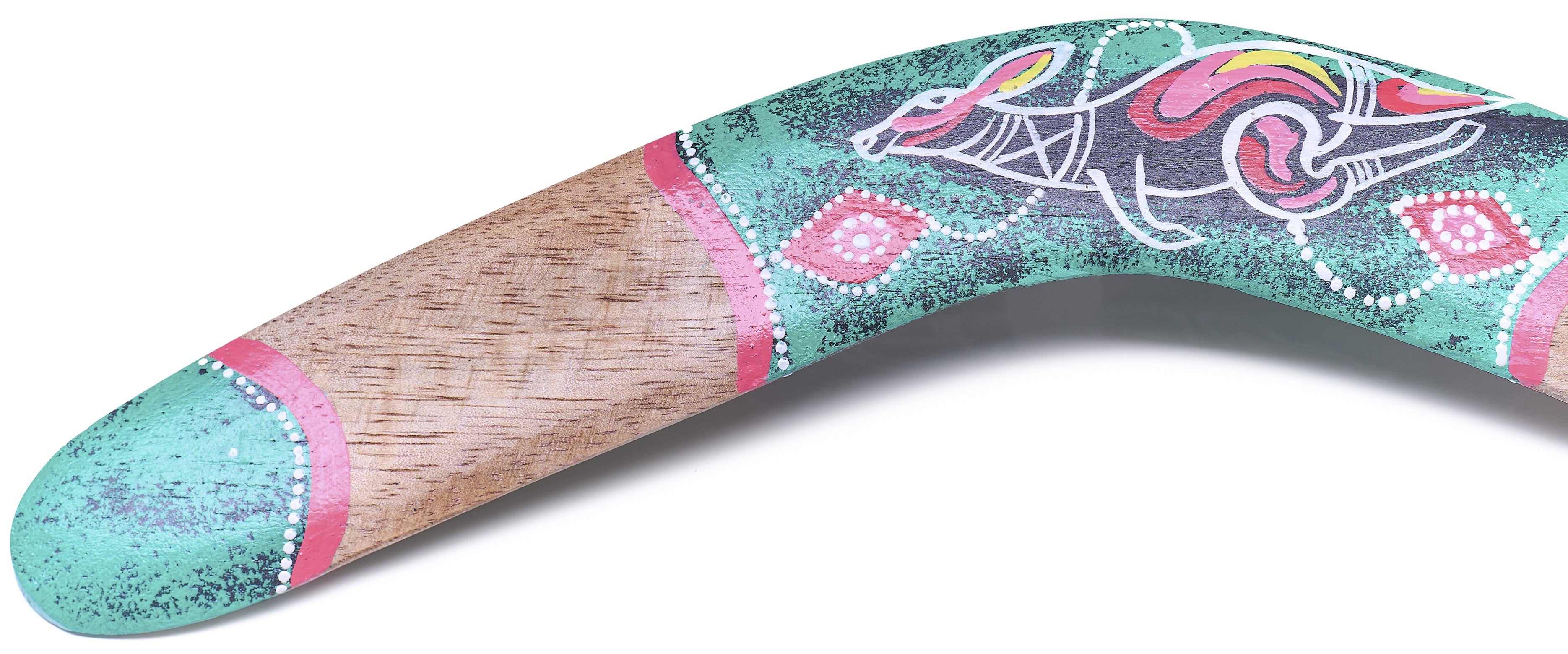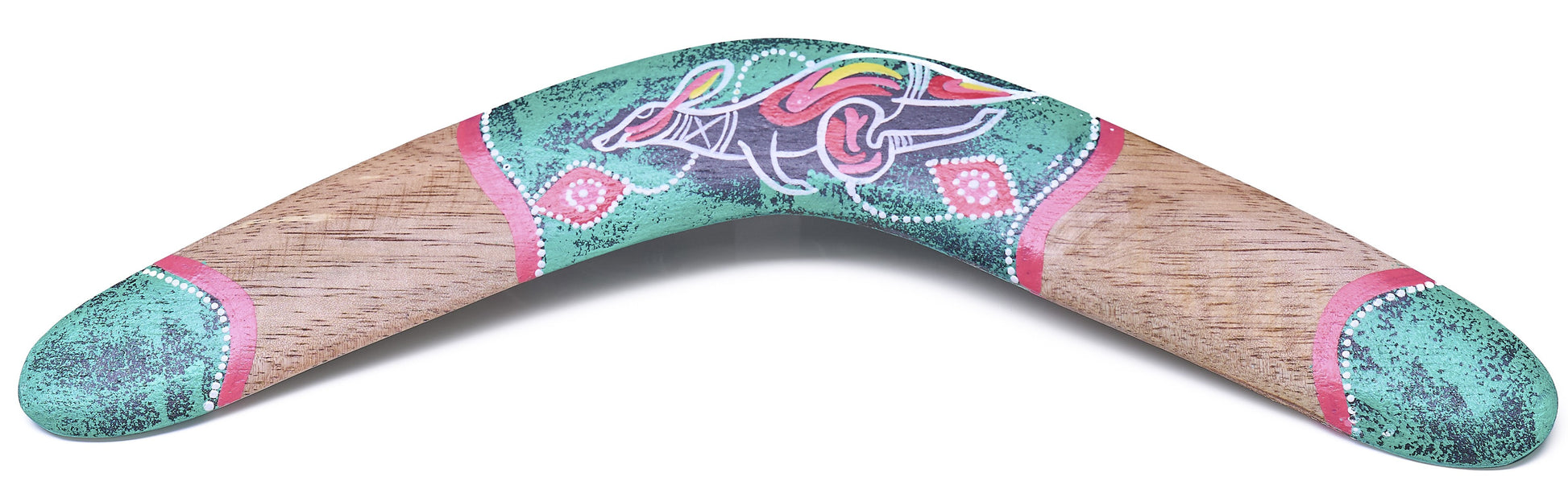 - Houten boemerang – formaat: 40 cm met kangoeroeprint
