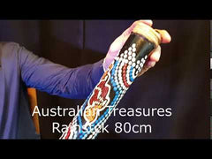 Deze prachtig handbeschilderde rainstick van 80 cm is een sfeervol en functioneel klankinstrument met een zacht, rustgevend regengeluid. Model RS80-painted is volledig met de hand gemaakt en voorzien van traditionele motieven in warme, natuurlijke kleuren.