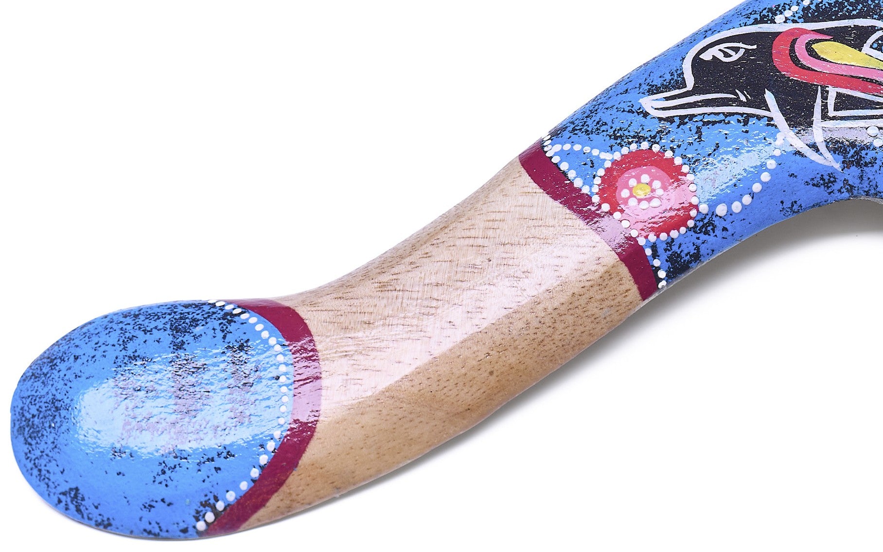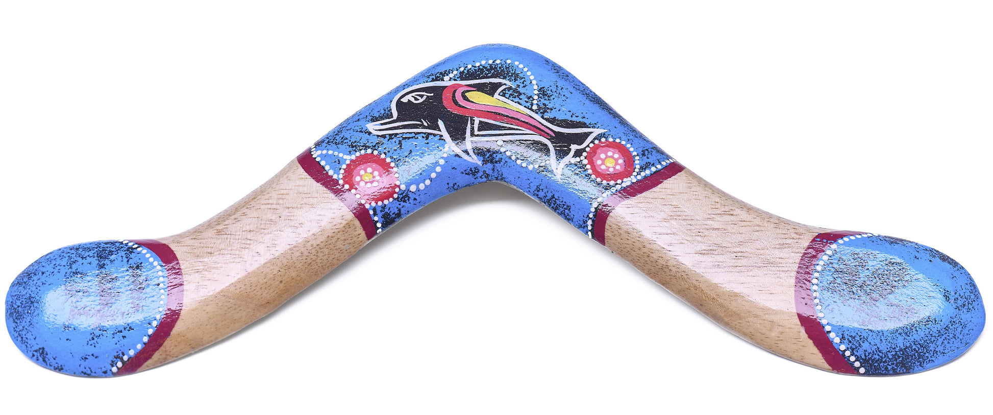 Bumerang Wide Tip Blå – Träkastbumerang med aboriginmålning (40 cm)